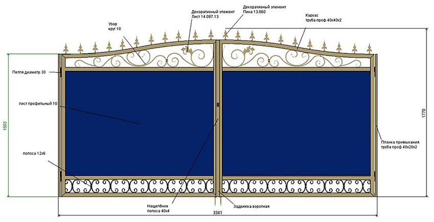 Стандартные чертежи и схемы ворот из профнастила своими руками