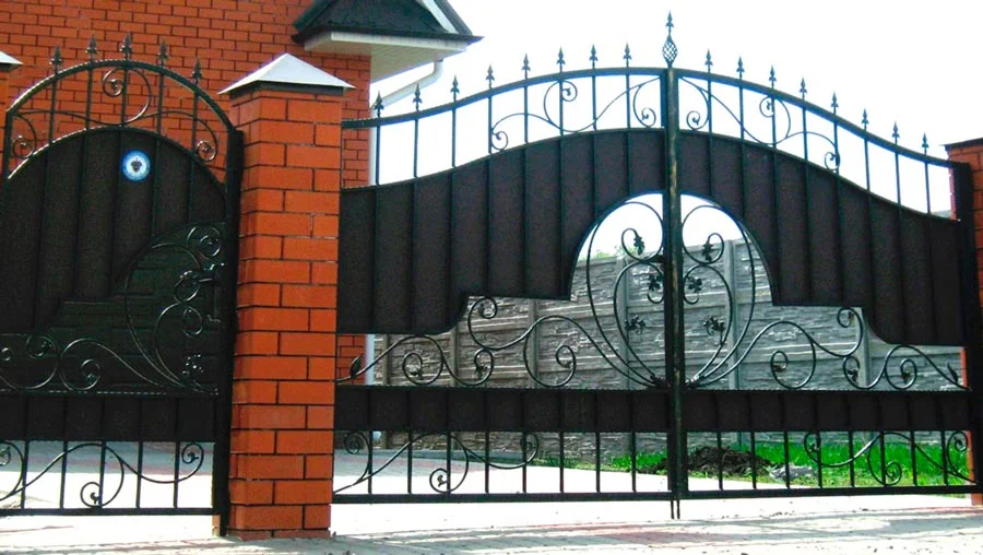 Существуют створки, выполняющие одновременно несущую и ограждающую функцию, к примеру, створки из кованых элементов. Если конструкция кованых деталей позволяет использовать их без каркаса, то остается только закрепить петли и закладные для замка.