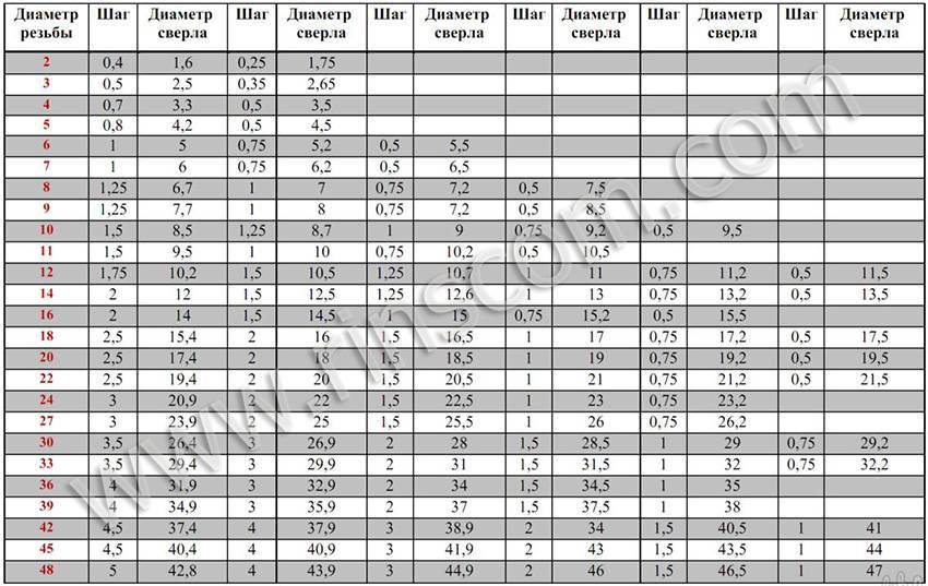 Считается, что для формирования полноценного резьбового профиля диаметр исходной заготовки (для наиболее популярных диаметров) должен соответствовать следующим значениям:
