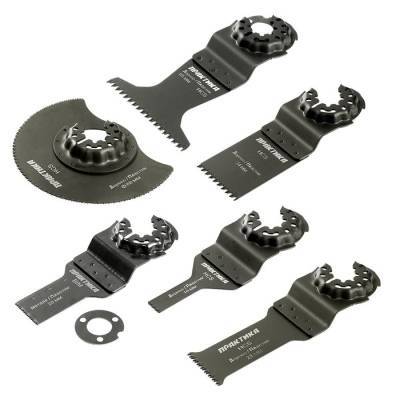 Оснастка для этого инструмента производится, только, из высококачественных материалов, а конфигурация конкретной насадки зависит от того профиля работ и материалов, для которых она предназначена: пильный диск, в частности, имеет сегментированную форму, оснастка для удаления раствора – форму капли, шлифлисты для обработки древесины – дельтовидную форму. Нередко производители кроме отдельных единиц предлагают набор насадок: при приобретении такого комплекта можно быть уверенным, что при проведении монтажно-ремонтных или строительных работ все необходимое будет под руками.