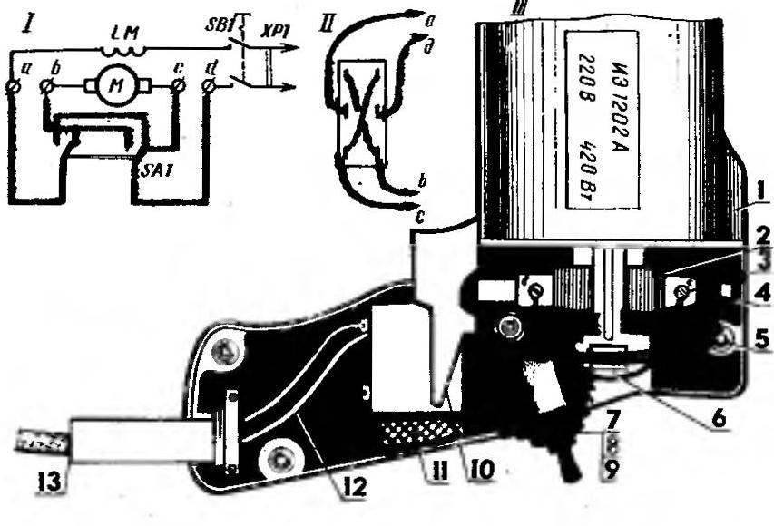 Отсутствие сопротивления указывает на обрыв. Подключение кнопки электродрели О принципе работы регулятора оборотов читайте в статье устройство дрели. Устройство электродрели: 1 — статор, 2 — обмотка статора вторая обмотка под ротором , 3 — ротор, 4 — пластины коллектора ротора, 5 — щеткодержатель со щеткой, 6 — реверс, 7 — регулятор оборотов.