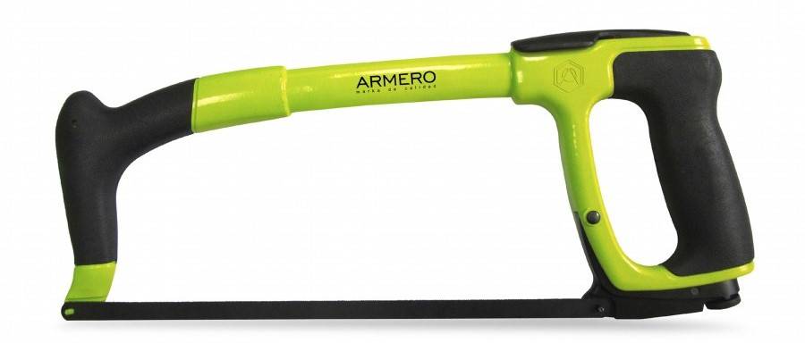 Комплектуется эргономичной двухкомпонентной антискользящей рукояткой. Рельефная поверхность обеспечивает надежный хват. Предусмотрены отверстия для удобного хранения в подвешенном состоянии. Отсутствие люфта ручки обеспечивает точность при выполнении сложных распилов.