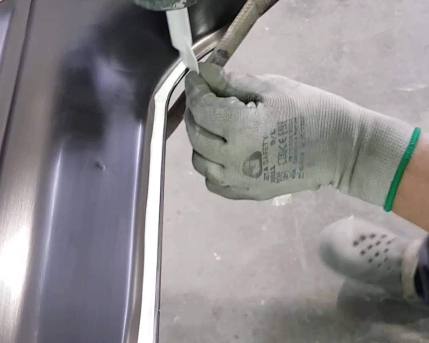 На завершающем этапе выполняется очистка сварных соединений от химических веществ. Для этого используется вода