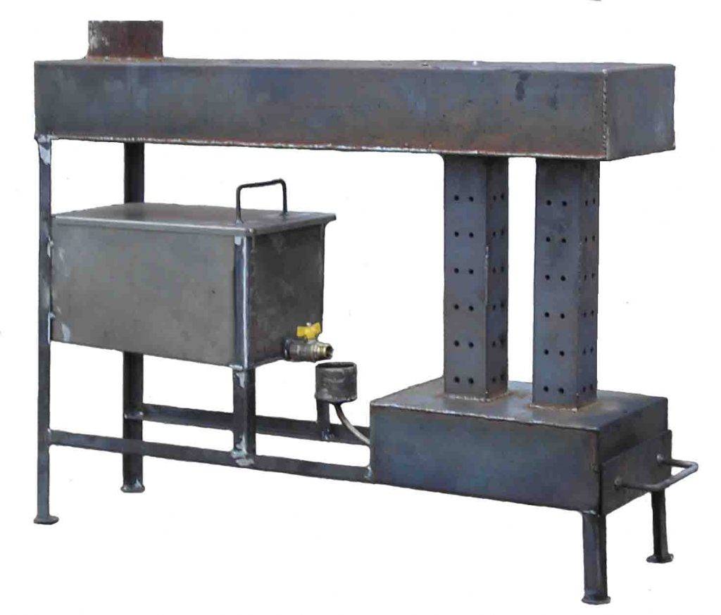 В одной камере осуществляется медленное сгорание отработки с образованием горючих паров, которые переходят во второй отсек и смешиваются там с воздухом. Во второй камере воздушно-газовая смесь сгорает с выделением большого количества тепла.