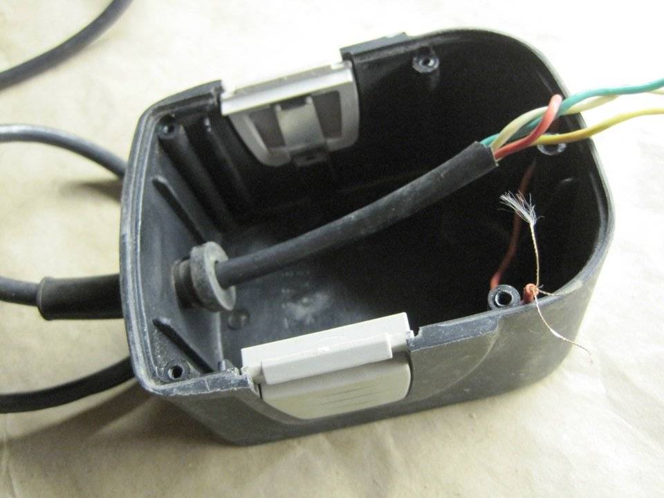![]() | К проводам высокого напряжения подпаять концы штепсельного разъема. Здесь будет соединяться 220 В. К проводам низкого напряжения также установить разъем. Он в дальнейшем будет соединен с проводами инструмента. |