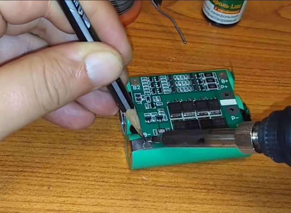 Во избежание короткого замыкания защитный модуль изолируется от аккумуляторов термоусадкой, это убережет его от контактов пайки или сварки.