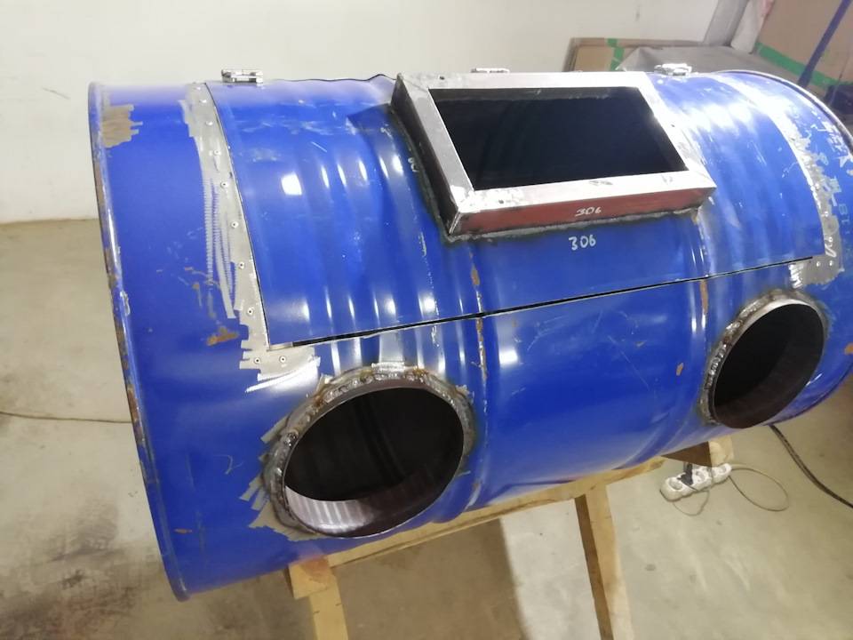 - Обитаемые аппараты. Это крупногабаритные конструкции, применяемые для очистки деталей большого размера, предметов, машин. Это закрытые металлические боксы, внутри которых располагается подвижное сопло пескоструя. Оператор управляет технологическими процессами, находясь внутри камеры. Преимущество обитаемых конструкций — возможность обработки заготовок любых размеров.