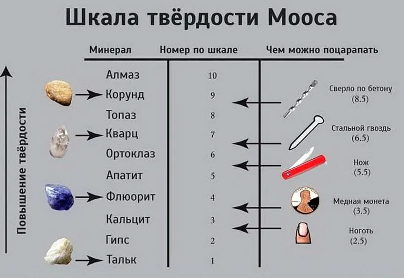 Шкала твердости Мооса показывает стойкость абразивных материалов к внешнему механическому воздействиюИсточник stroy-podskazka.ru