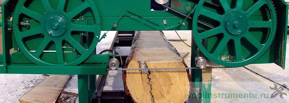 - ленточный вариант может осуществить распил довольно крупных заготовок. При работе на этой пилораме, имейте в виду, что вокруг нее на большое расстояние летят опилки, по этой причине нужно быть острожным.