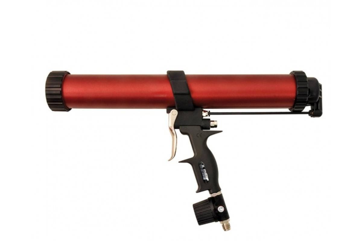 Пневматический. Один из наиболее надёжных инструментов для профессионалов. Может использоваться с тубами разных видов, универсален. Подача вещества осуществляется не движением поршня, как это происходит во всех остальных моделях, а за счёт давления нагнетаемого в тубу сжатого воздуха.