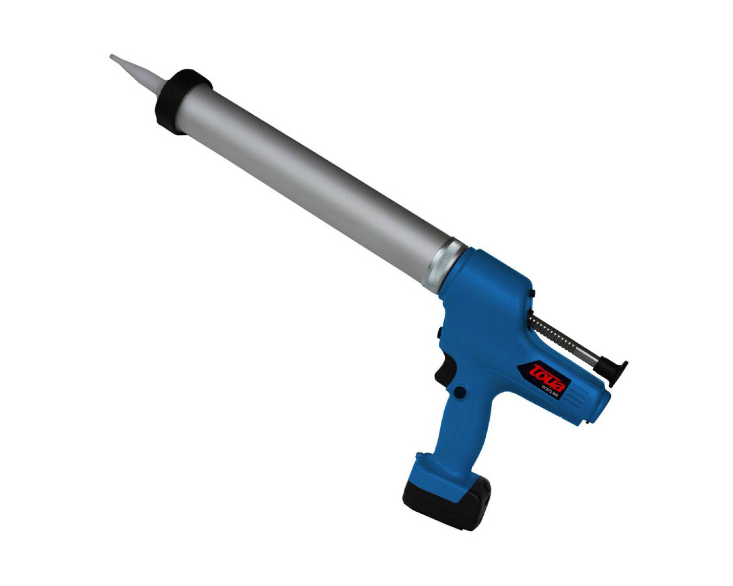 Аккумуляторный (электрический). Относится к категории профессиональных. Имеет регулировки подачи смеси, может использоваться с фасованным или нефасованным герметиком. В базовый комплект входят несколько насадок-сопел, позволяющих изменять диаметр полученного шва.