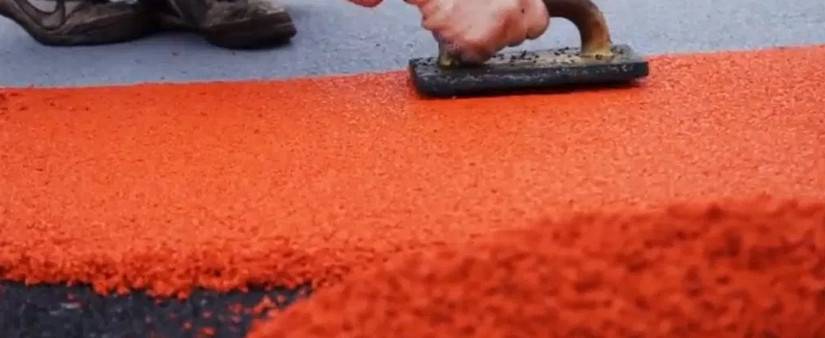 В качестве такого средства можно использовать мыльную воду, уайт-спирит или скипидар. После заглаживания, поверхность смеси требуется прикатать, используя валик для укладки резиновой крошки. В результате этой операции покрытие уплотняется и образуется гладкая текстура.