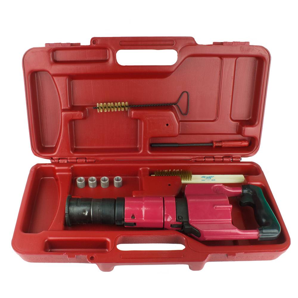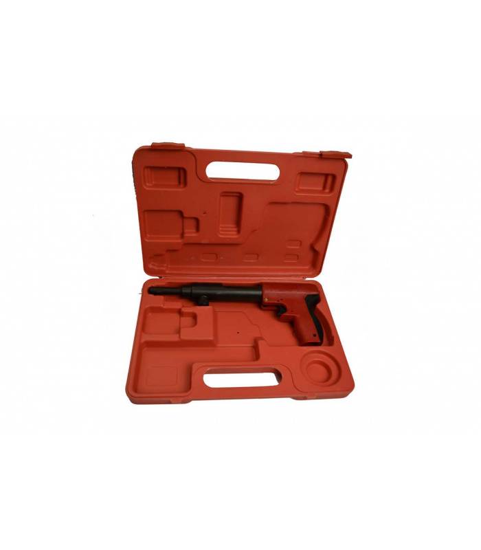 - Поставляется агрегат в ударопрочном пластиковом чемоданчике, в котором можно помимо пистолета разместить сменные газовые баллончики и обоймы с дюбелями.