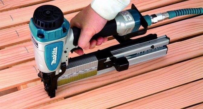 - Реечный, используется лента, куда крепится определённое количество гвоздей;