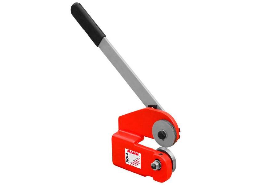 Механические дисковые ножницы с ручным приводом. Инструмент рассчитан на резку листового металла толщиной до 1,5 мм. Подача листа на режущие кромки обеспечивается рычагом с храповым механизмом, одновременно обеспечивающим вращение дисков;