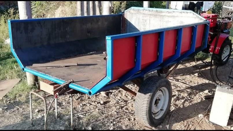 Способность кузова выдержать тот или иной груз зависит от качества сборки. Тележка должна быть изготовлена из прочного материала, способного выдержать тяжесть груза и любые погодные условия. Кроме этого, желательно, чтобы она имела откидные борта для удобства погрузки и разгрузки. Габариты должны быть вместительными и соответствовать мощности мотоблока.