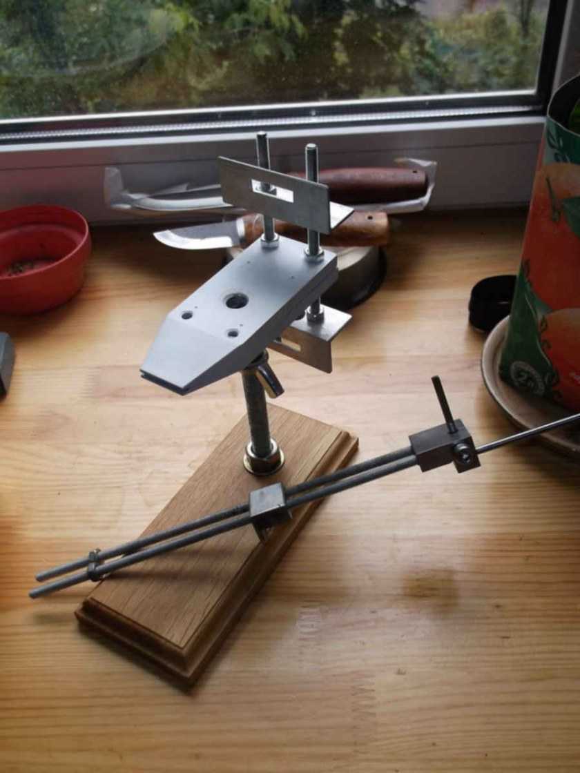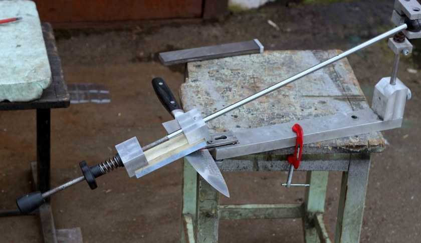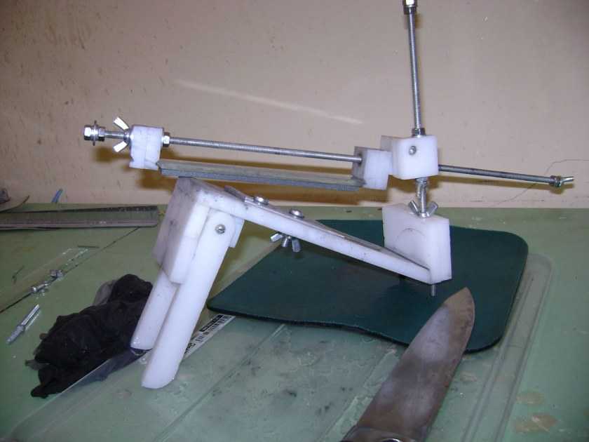 Оптимальный угол заточки кромки ножа составляет от 20 до 30 градусов, в зависимости от функционального предназначения инструмента. Производить ручную заточку под этим углом довольно сложно, поэтому для такой цели применяют простые самодельные механизмы.