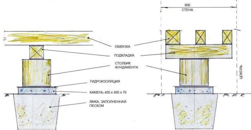 - для последующего монтажа напольного укрытия выкладывают лаги, которые могут опираться на столбы;
