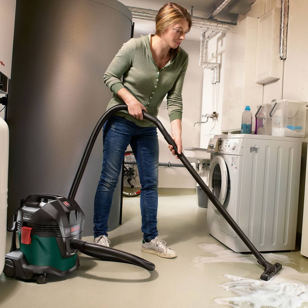Модель, специально разработанная для промышленной уборки помещений после проведения строительных и отделочных работ, но может применяться и в домашних условиях. Универсальная конструкция позволяет убирать влажные и сухие отходы без смены фильтрующего элемента.