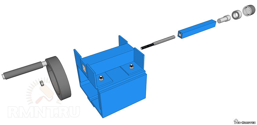 Принцип работы и схема сборки пиноли вполне очевидны, но особое внимание нужно уделить юстировке осей. Направляющая трубка, закреплённая сваркой в вырезах уголков, может подниматься выше или ниже за счёт подкладок из трансформаторной стали