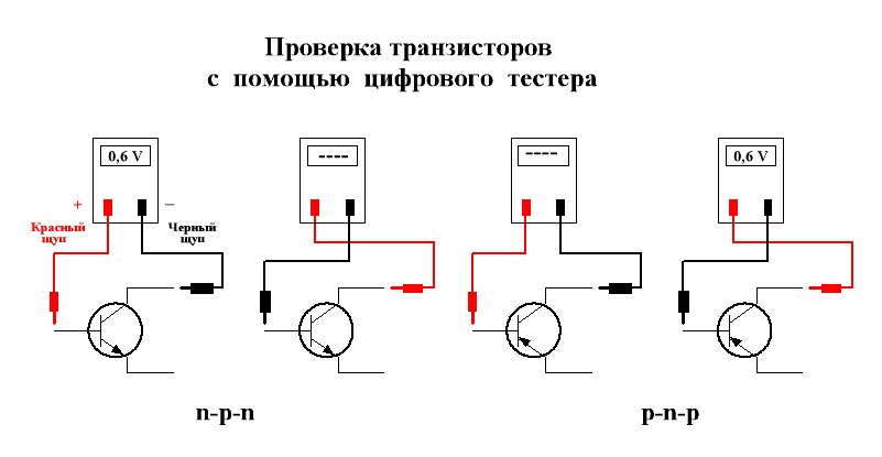 Проверка биполярного транзистора мультиметром выполняется в следующем порядке: