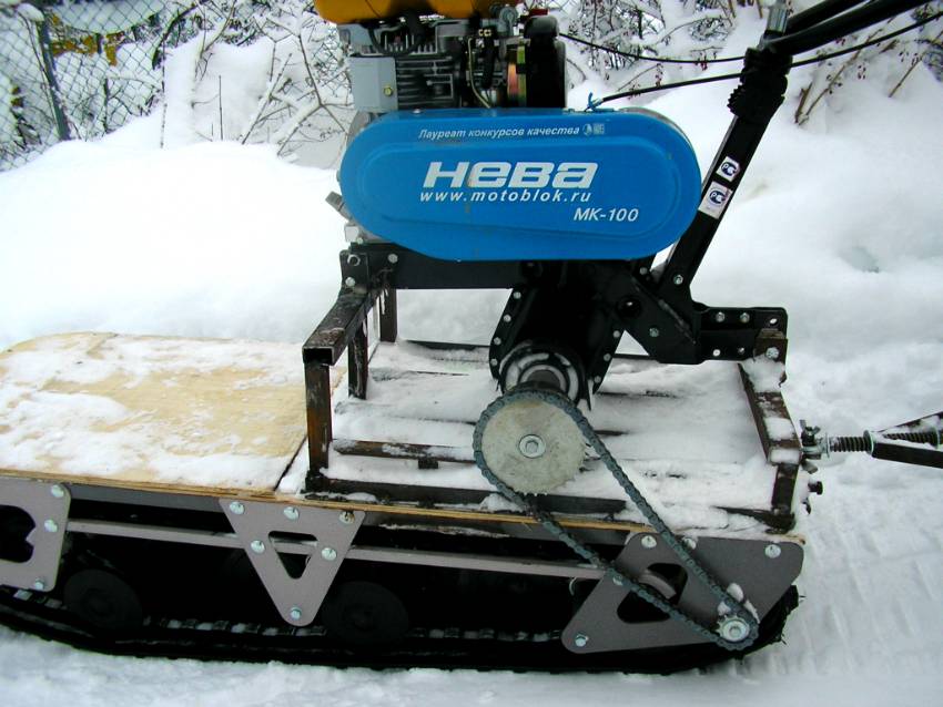 Хотя в базовой комплектации мотоблоки Нева оснащаются колесами, вы можете купить к своему агрегату гусеничную приставку. Гусеничные мотоблоки Нева отличаются от колесных аналогов повышенной проходимостью в дождливую или снежную погоду и позволяют использовать агрегат в любое время года. Вы можете купить гусеницы для мотоблоков Нева, а можете сделать их своими руками с использованием подручных средств.