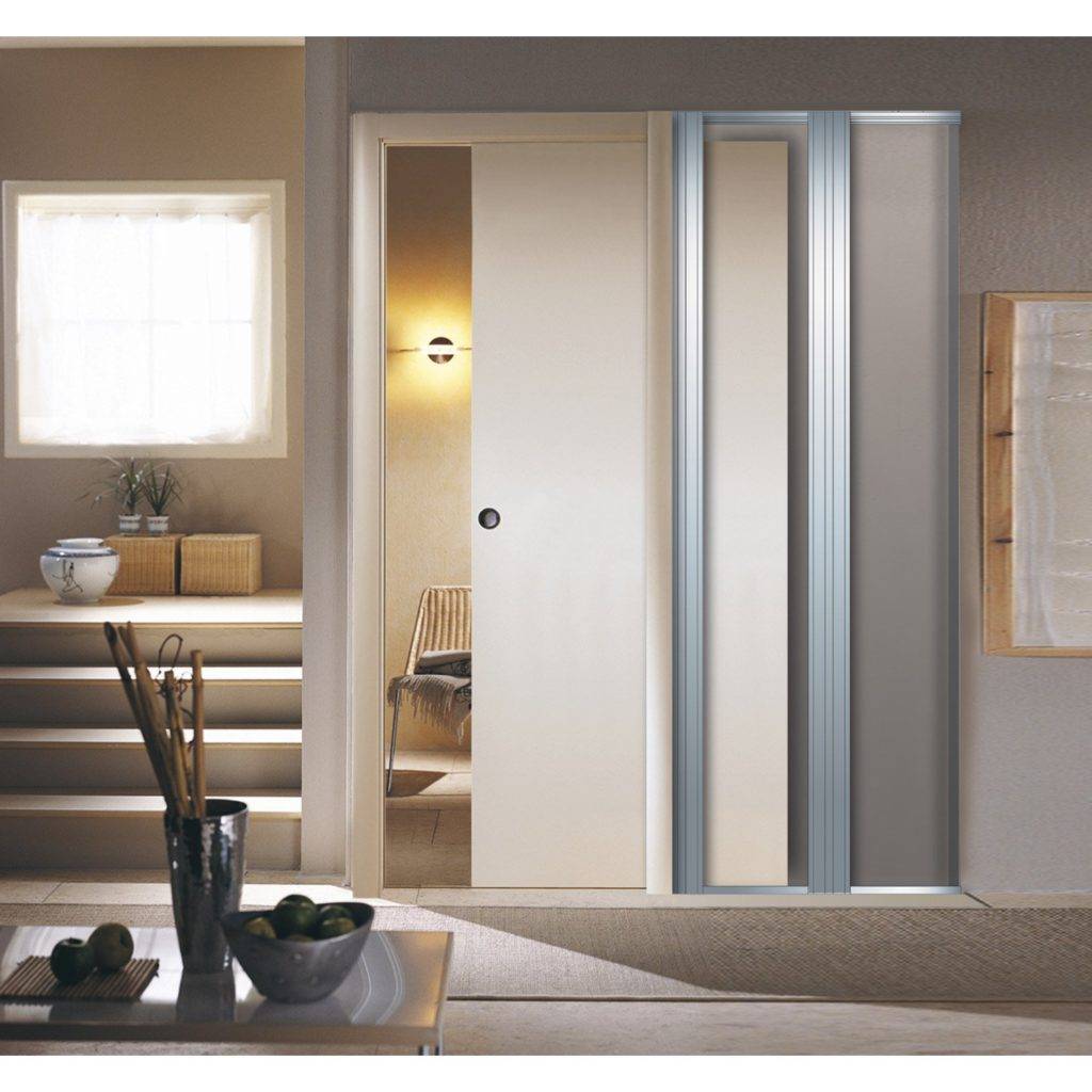 Одностворчатые раздвижные двери вписываются в стандартные проемы размером от 600 до 900 мм. При более широких проходах могут использоваться двух- или многостворчатые двери, перекрывающие до 1700 мм.