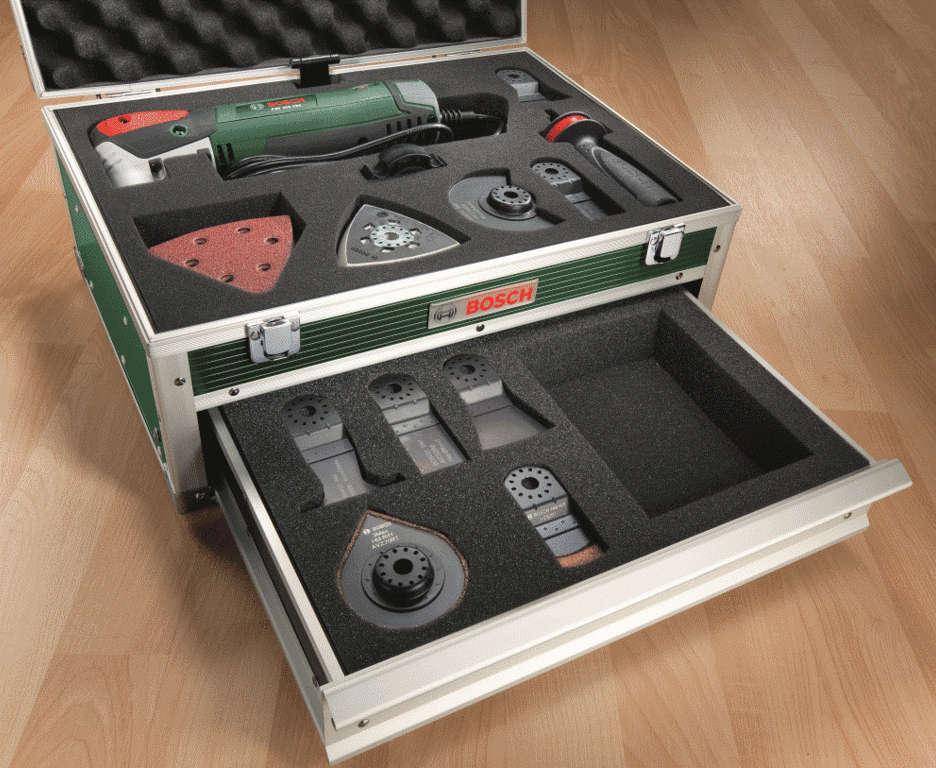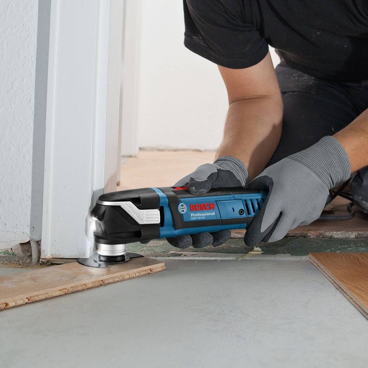- BOSCH GOP 10,8 V — LI 1,5 является многофункциональным инструментом, в комплектацию которого входит 36 насадок. С его помощью можно даже зачищать плиточный клей. Частота колебаний имеет пределы от 5000 до 20000 от/мин. Комфортную работу обеспечивает аккумулятор с быстрозарядным устройством.