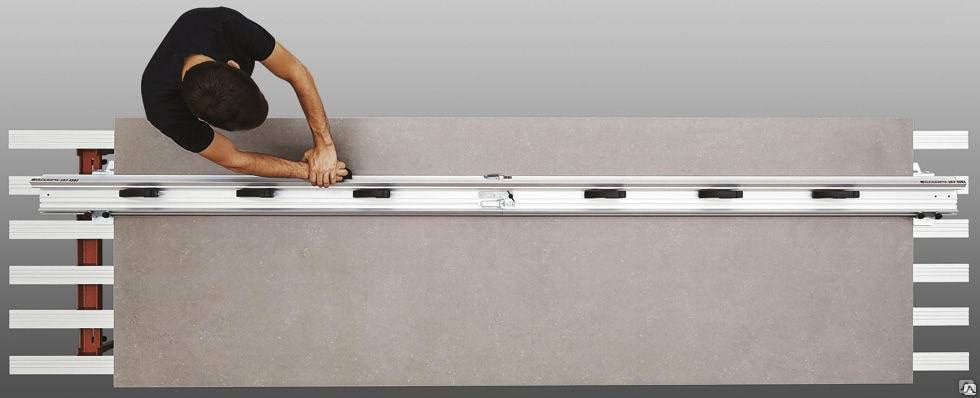 Плиткорез для крупноформатной плитки отличается от привычных моделей. Ввиду особой геометрии прямоугольников требуются увеличенные: