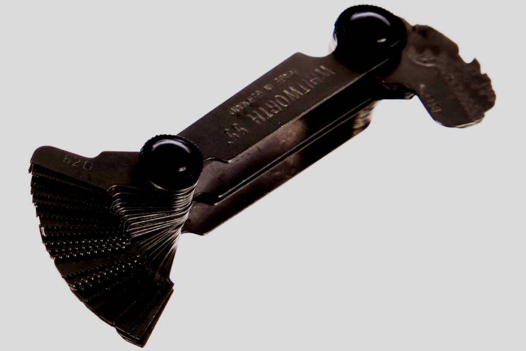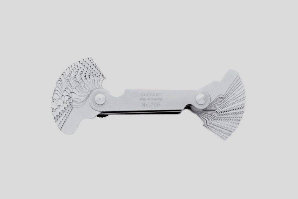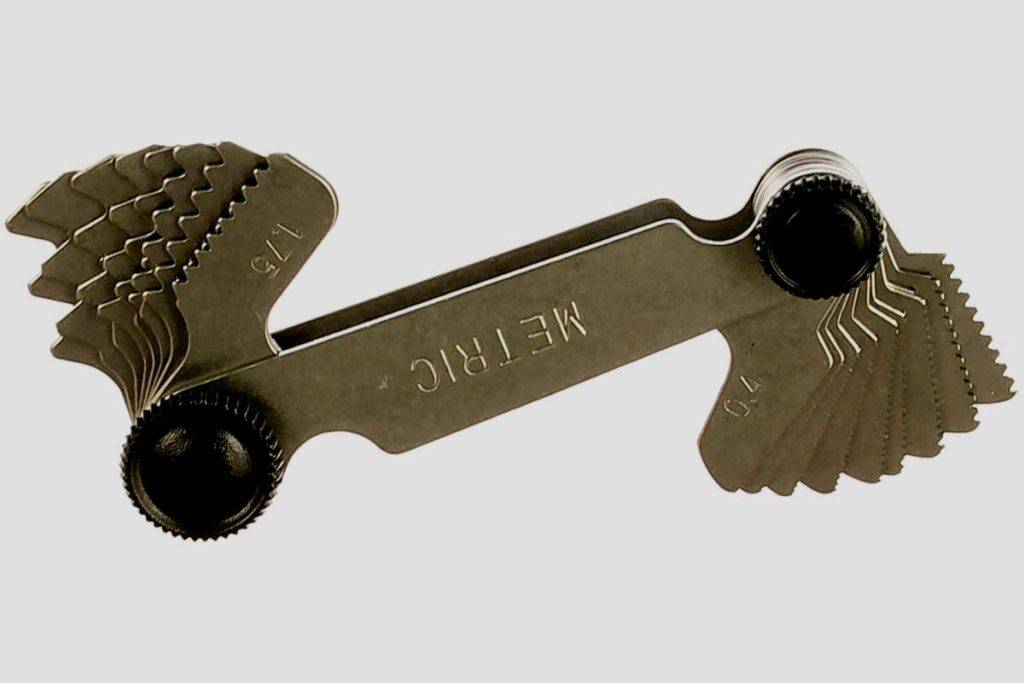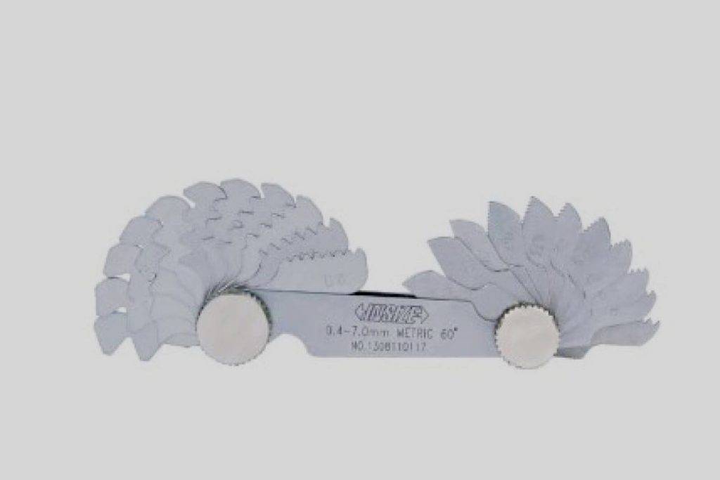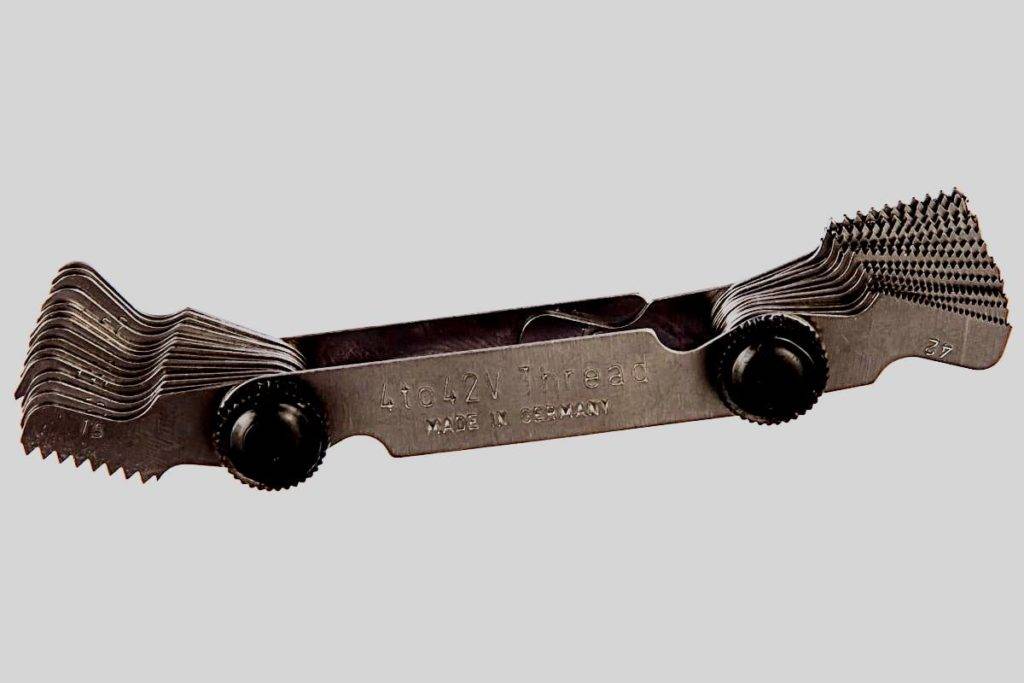 Еще один способ проверки шага, а также других параметров резьбы, предусматривает использование резьбомера. Это пластина, имеющая зазубрины, которые по размерам и другим параметрам точно соответствуют определенной стандартной резьбе. Резьбомер прикладывают к проверяемой нарезанной резьбе. При этом его зазубренная часть должна точно совпасть с ее гребнями и впадинами, обеспечив плотное прилегание.