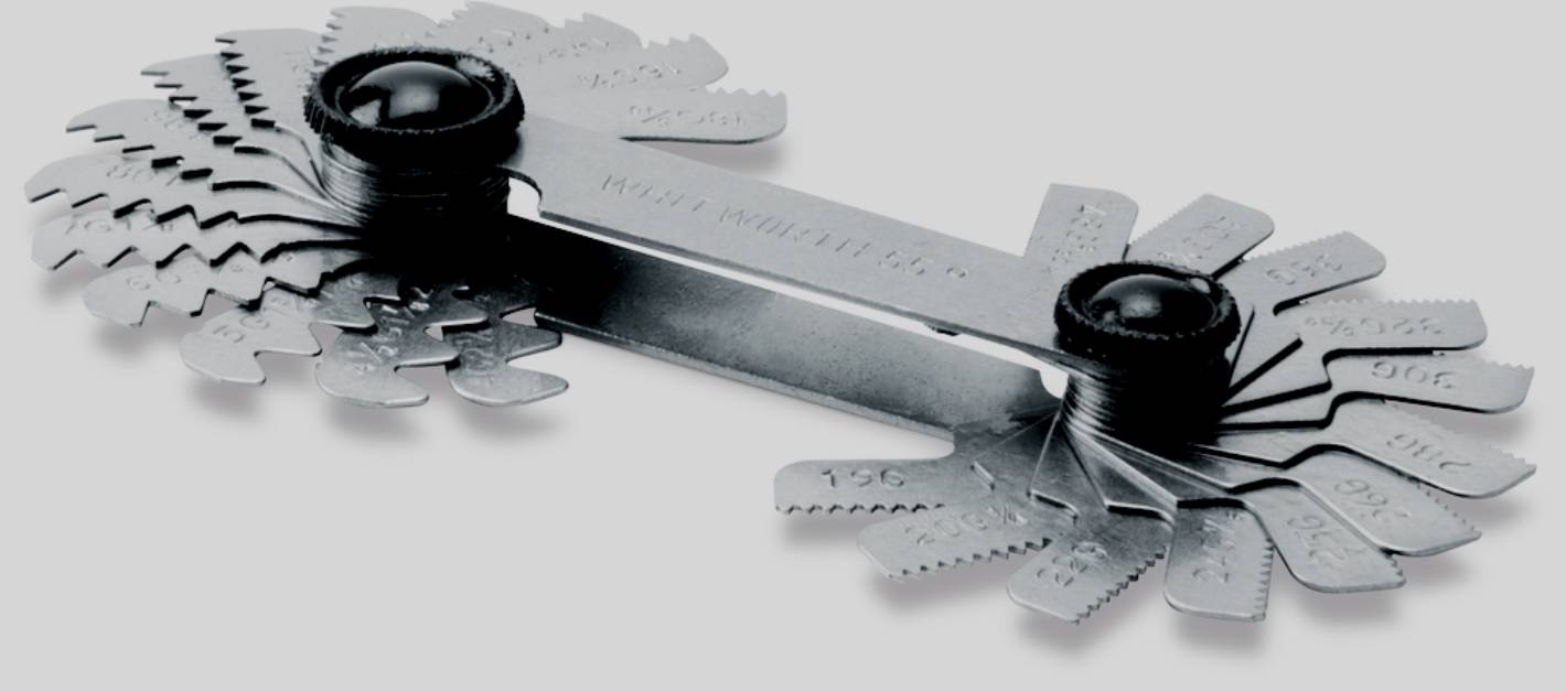Соблюдение шага дюймовой резьбы по таблице— необходимое условие работоспособности соединения. Поэтому при нарезке рекомендуется проверять соответствие этого параметра. Измерение шага резьбы проводится при помощи калибра,резьбомера, механического измерителя и других специальных инструментов.