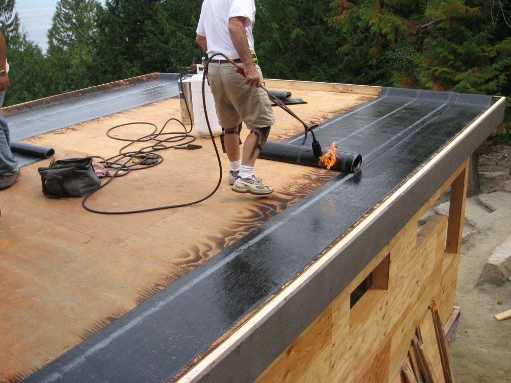 Если она плоская, то нужно сделать 5 слоев рубероида. При уклоне кровли меньше 15 градусов положите 4 слоя. Если крыша имеет скат от 45 градусов, то достаточно 2 слоев материала. При среднем уклоне делают 3 слоя