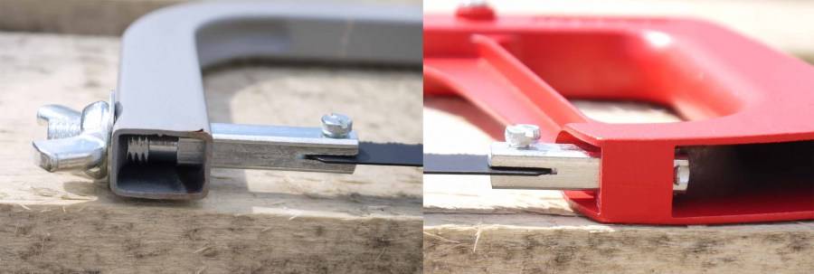 - Тип ручной ножовки по металлу, точнее – расстояние между крепёжными отверстиями. Лучше, если оно – изменяемое, тогда для работы подойдёт ножовочное полотно любого типоразмера.