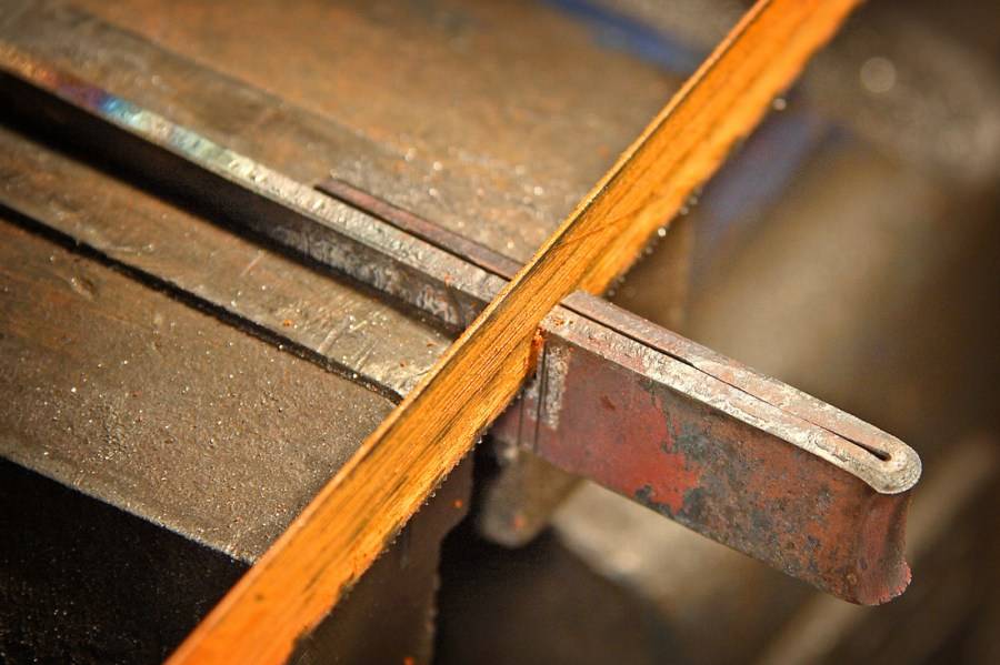 Нагрузка в процессе работы существенная, поэтому необходимо закрепить деталь в тисках. Неподвижное положение удобно при работе, можно акцентировать усилия при движении вперед и несколько ослаблять его при возврате инструмента.