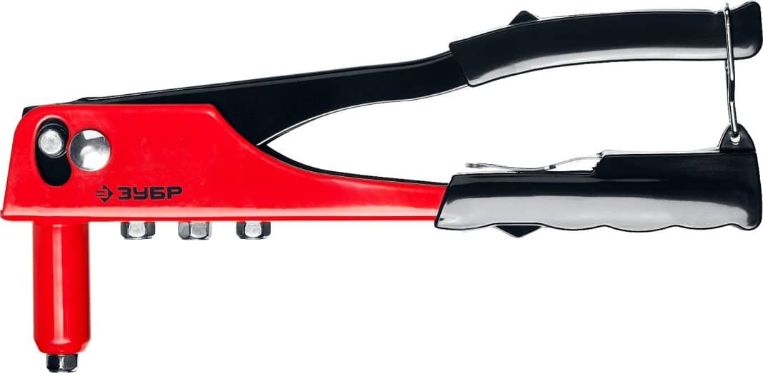 Двуручные отличаются большими размерами, устанавливать ими можно и заклепки больших диаметров — до 8 мм. Отличить можно по виду — длинные ручки, которые находятся в одной плоскости с рабочими губками. Выбирать двуручный заклепочник имеет смысл в том случае, если планируется использовать заклепки большого диаметра.
