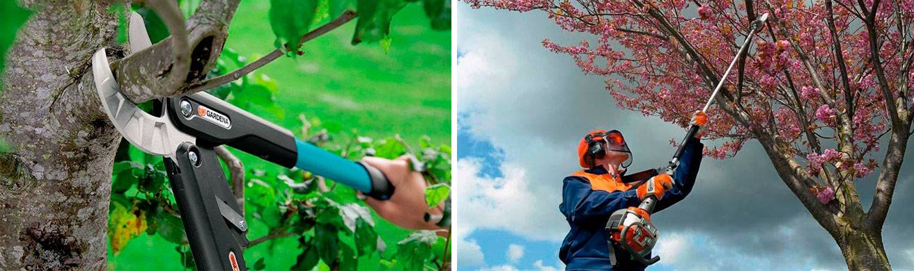 При помощи высотореза можно обрезать ветки, расположенные на большой высоте. Этот инструмент оснащен режущим механизмом, который приводится в действие с помощью рукоятки, и телескопической ручкой, которую можно удлинить в зависимости от высоты дерева.