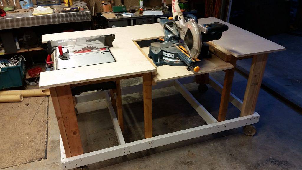 Не рекомендуются в качестве материала для столешницы пластик, древесно-стружечная плита или ОСП. Конструкция, изготовленная из этого сырья, будет неустойчивой к вибрации от пилы. Делать стол полностью из натурального дерева можно — но слишком дорого.