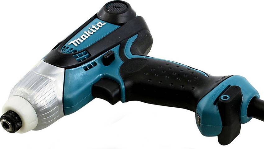 Теперь немного о некоторых моделях сетевых шуруповертов, которые чаще всего ищут на форумах и пишут отзывы.Макита (Makita) Td0101. Сетевой ударный шуруповерт мощностью 230 Вт и крутящим моментом 100 Нм. Цена на него примерно 5500 — 6000 рублей. Имеет одну скорость вращения, число оборотов до 3200 об/мин, шестигранный патрон диаметром 6.35 мм. В нем есть реверс, блокировка кнопки включения, тормоз двигателя, регулировка частоты вращения и чистый вес 990 грамм.