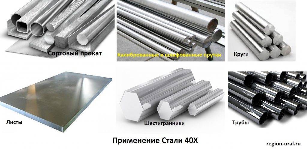 Сталь Ст 40Х используется для изготовления осей и стержней для передачи крутящего момента, вал-шестеренок, поршней, трубопроводной арматуры, колец, вращающихся деталей, инструментов для клепальных работ, измерительных устройств, болтов, деталей для аппаратов с вращающимися барабанами, деталей конической формы и прочих элементов. Сталь марки 40Х требуется, если нужно произвести улучшаемые изделия, имеющие повышенную прочность.