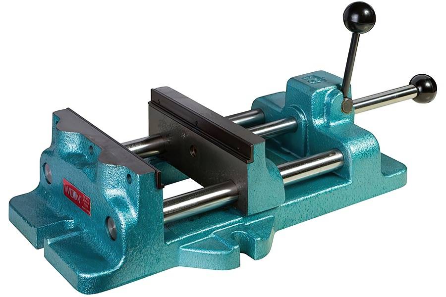 Содержат внутри подпружиненный винт. Вращением устанавливается предварительный размер между губками. Воздействие на ручку обеспечивает притягивание. Инструмент экономит время, когда требуется частая переустановка детали или тиски задействованы в серийном производстве.