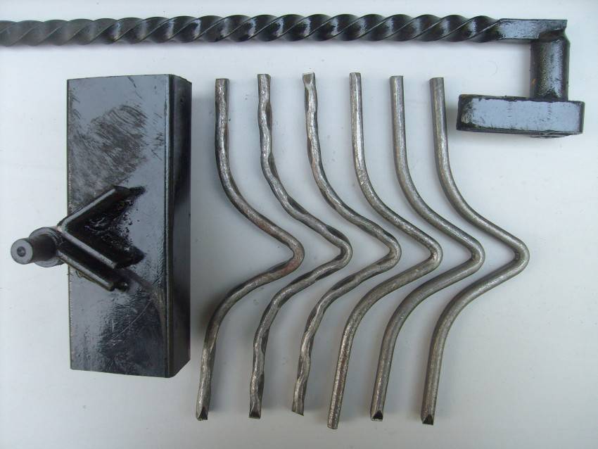 Сборка всех деталей в одно целое не представляет особой сложности. Сначала нужно разделить плиту на квадраты со стороной 4 см или 5 см. Когда эти квадраты размечены, в их углах при помощи перфоратора высверливаются глубокие отверстия, в которые далее устанавливаются штыри. Лучше всего иметь при себе чертежи самодельных трубогибов для профильной трубы, чтобы постоянно сверяться с ними.