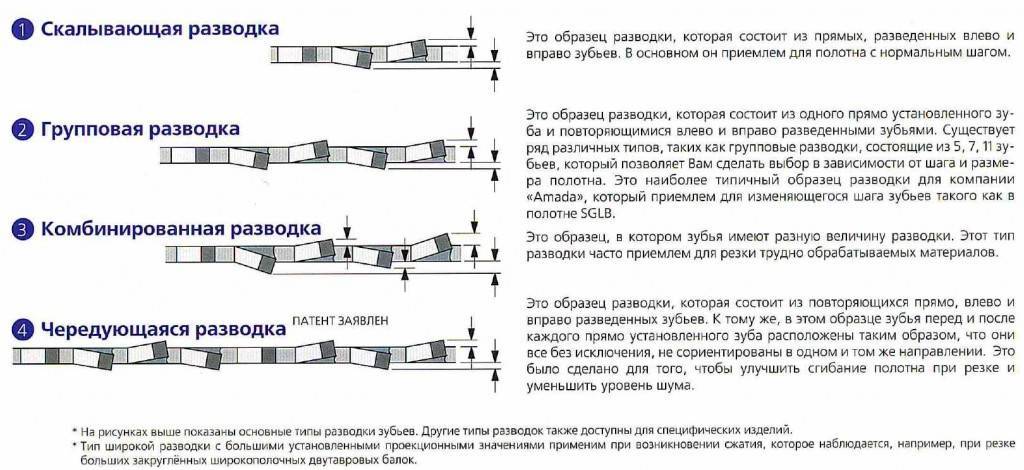 Типы разводок ленточных пил