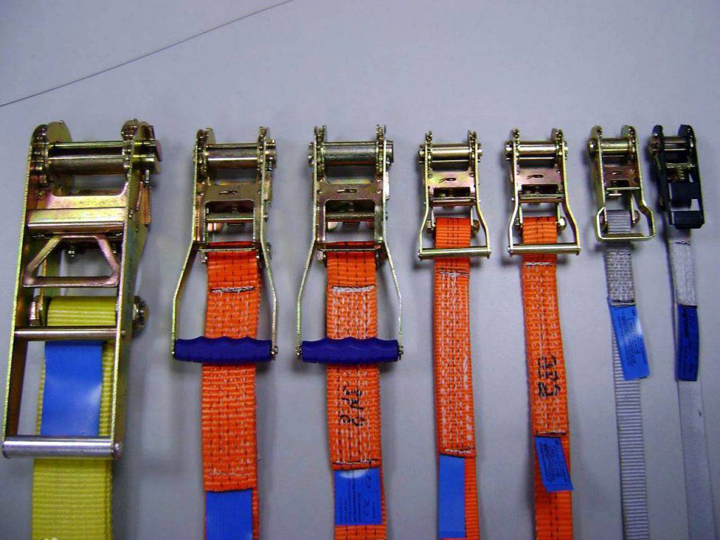Ремни для крепления с храповым механизмом практически все устроены по одному принципу. Они могут различаться только по ширине ленты, размерам храповика и форме крюка. Стяжки также можно разделить по качеству стали, из которой они изготовлены. Чем прочнее сталь, тем большую нагрузку может выдержать запорное устройство и храповик.