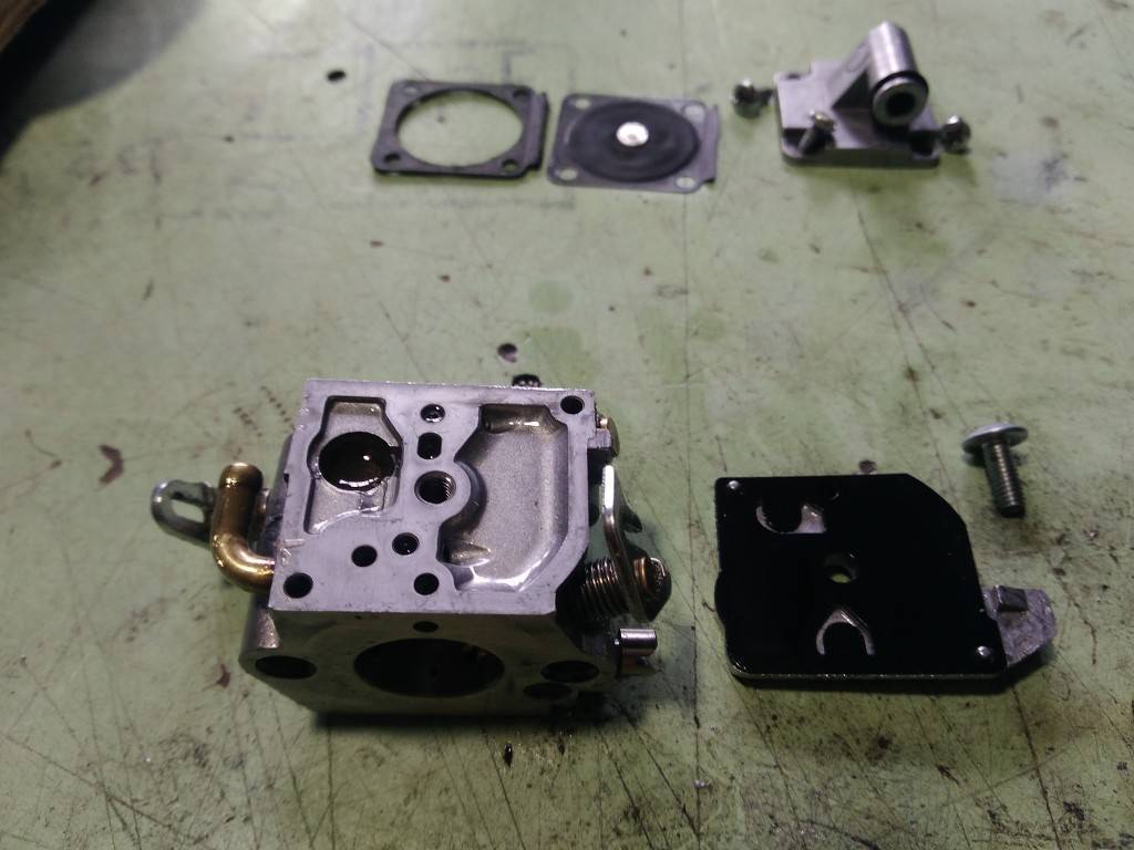 Ремонт данного узла не сложный, вполне по силам многим владельцам инструмента. Устройство следует снять с двигателя, отверстия закрыть ветошью или другим материалом. Если образовавшийся слой слишком твердый, все детали можно оставить отмокать в теплой воде с моющим средством. После размягчения налета детали следует промыть ветошью или мягкой щеткой, тщательно протереть. Недоступные места можно продуть сжатым воздухом или высушить феном. Использование механических средств удаления нежелательно.