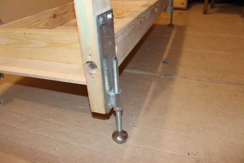 - Прикрепите к раме ножки будущего верстака и также усильте их с помощью «треугольников», как и саму раму, во всех восьми местах. Длина (высота) ножек, к примеру, под рост мастера в 1,8 м может быть равной ровно метр. Старайтесь подобрать такую высоту верстака, чтобы вам удобно было работать, не нагибаясь.