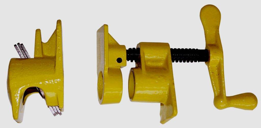 Подобные установки относятся к категории крупногабаритных струбцин, которые применяются для соединения труб. Неподвижный элемент устанавливается на торец трубы, а последующий процесс фиксации осуществляется за счет навинчивания подвижного элемента. Подходит как для строительных, так и ремонтных работ трубопроводов. Исходя из приведенных в интернете обзоров и описания производителей, трубные конструкции характеризуются повышенной степенью надежности.