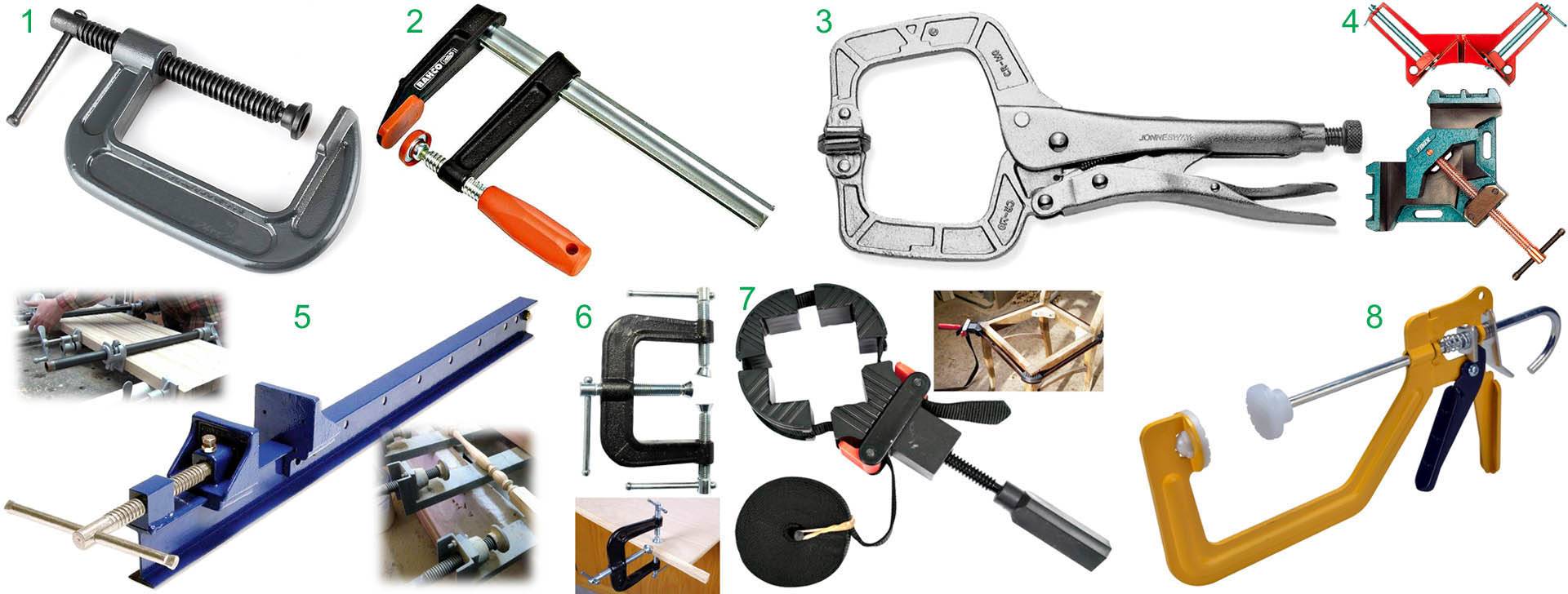 Наиболее употребительные в кустарном производстве виды струбцин показаны на рис: