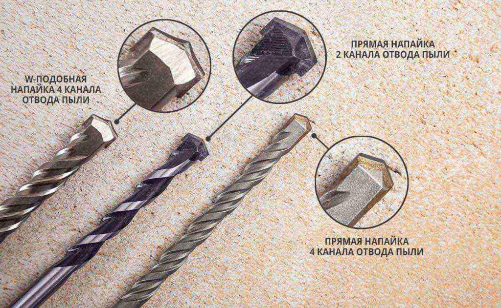 Сверла по бетону имеют особые напайки из очень прочного сплава, по степени твердости приближенного к алмазу. Он называется «победит». Победитовое сверло по бетону на сегодняшний день является самым прочным и не имеет аналогов по данному параметру.