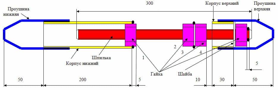 - Длина самого талрепа при вывинченных захватах (резьбовая часть не выходит из тела муфты, но полностью заполняет его).