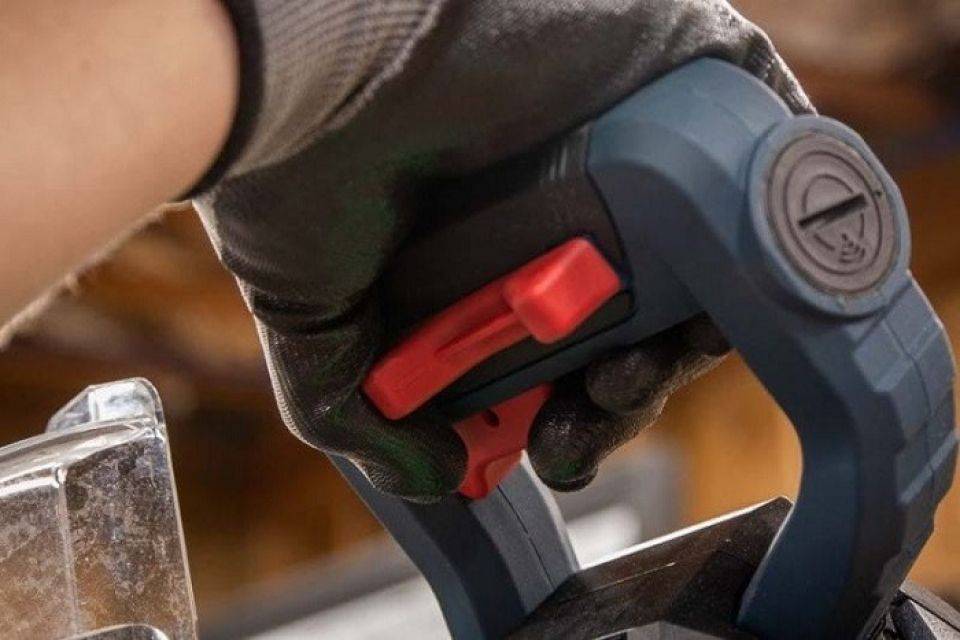 Чтобы активировать триггер, вам нужно пальцем сдвинуть предохранитель вправо или влево. Это выглядит немного странно, но входит в привычку уже после нескольких резов. Быстрое нажатие на курок включает лазеры, которые помогут выровнять линию распила, и светодиодную подсветку, чтобы осветить зону резки.